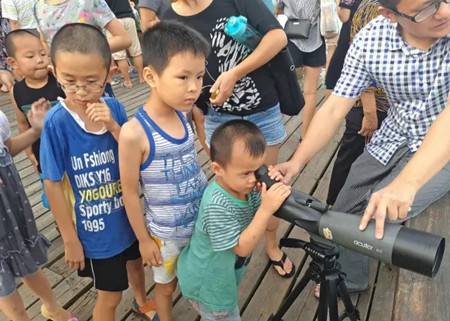 在海珠湿地,湿地保护协会举办了摄影展览和科普巡展,为游客讲解滨海湿地的保护现状,让广大群众在感受湿地之美的同时,认识湿地、了解湿地进而爱护湿地。