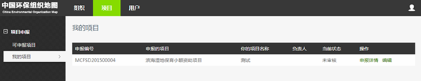 6、修改项目内容。在审核通过之前您可以随时登陆账户,在“我的项目”中对当前项目进行查看和编辑。示意图如下: