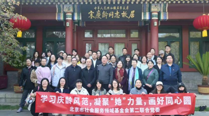 3月31日下午,北京市社会服务领域基金会第二联合党委组织开展了“学习庆龄风范,凝聚‘她’力量,画好同心圆”主题活动。社服二联合党委专职副书记李庆、组织委员李宏武、统战委员周福华出席活动,党务工作者刁满奎、李海军、王燕,流动党员第七联合党支部书记、北京绿盟公益基金会监事金海波,流动党员第八联合党支部书记裴智权,北京中辰慈善基金会流动党支部书记张淑萍,北京天使妈妈慈善基金会党支部书记牟星玮,北京合一绿色公益基金会流动党支部、民盟盟员、北京中道公益基金会秘书长谭星宇,北京市弘道慈善基金会理事长刘娟,北京市华安公益基金会秘书长李毅,北京市丽格慈善基金会秘书长薛华,北京吾爱公益基金会秘书长吕佳鹏,北京慈润公益基金会秘书长马璐璐等来自各基金会的党员、女性代表及统一战线成员一同走进宋庆龄故居,在深度讲解中感悟家国情怀,在实地参观中汲取精神力量。