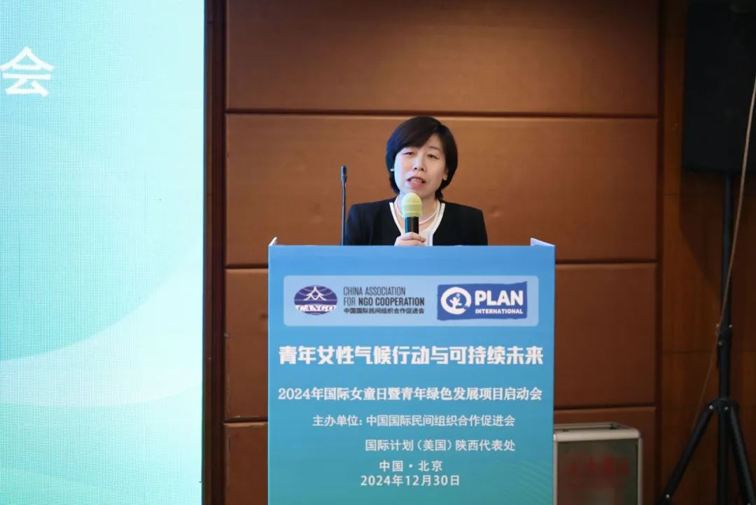 国际计划(美国)陕西代表处首席代表张烨霞女士首先致辞,介绍了气候行动与国际计划开展的人道主义援助以及发展工作的密切相关性,表达了对女童和青年女性参与气候行动的支持,并表示了对国际计划将与中国国际民间组织合作促进会、北京根与芽社区青少年服务中心合作开展“青年绿色发展项目”的期待。