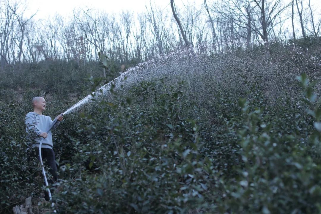 园区的茶树,从未人工浇水,是靠天靠地——降雨和土壤中的水份。这次增添设备,是因后山新开垦的50亩专以种植“信阳10号”的茶地。
