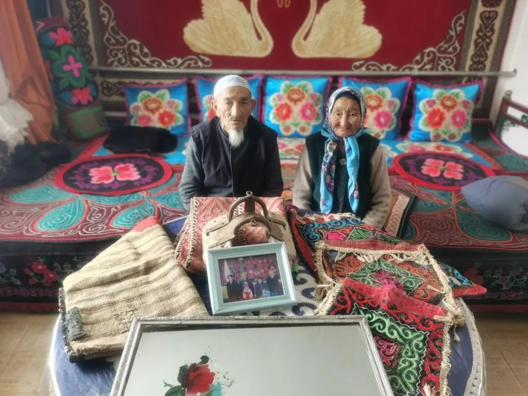 库丽汗奶奶一口气拿出了七件物品,连结婚时买的镜子都拿给我们,奶奶幽默地说:“我想支持你们的工作,也想给大家看一下。外面来的客人,多也行,少也行,想看就可以看。”