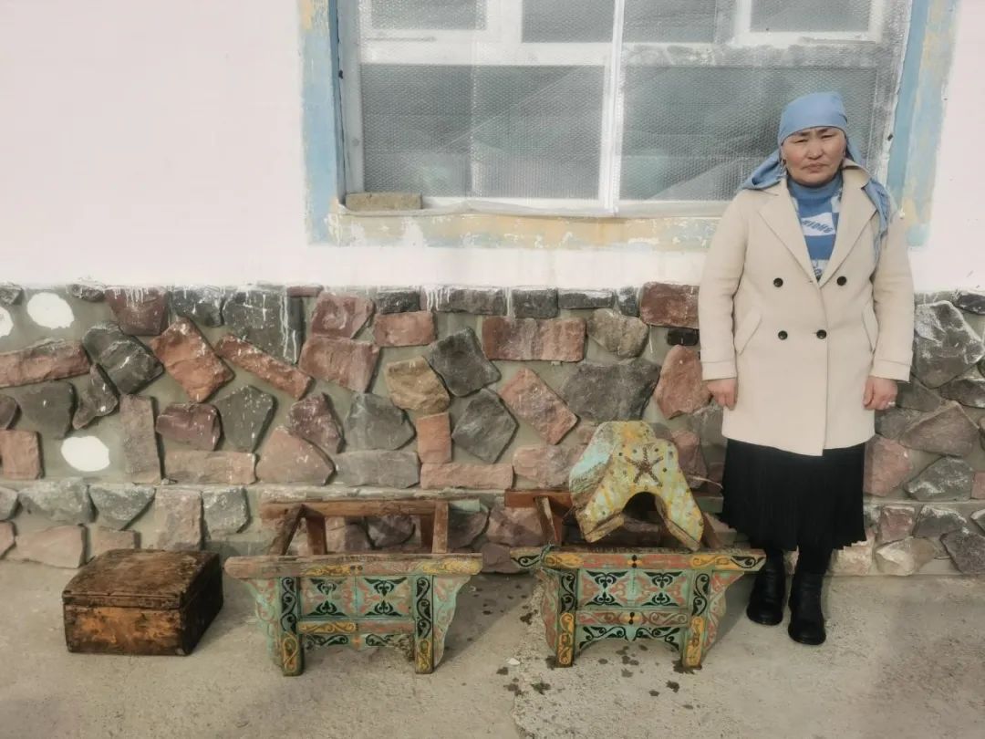 通知发出的第二天,努尔海夏就第一个到了村委会,她带来一个锅盖、一个木臼、一个刺绣布袋,都是游牧时常用的物品,锅盖配锅用来煮肉,木臼用来捣麦子去麸皮,布袋是转场时放碗和盘子的。她说:“这些东西就给你们,丢了也没事,公共空间是为了传承文化,给别人展示我们传统的东西。”