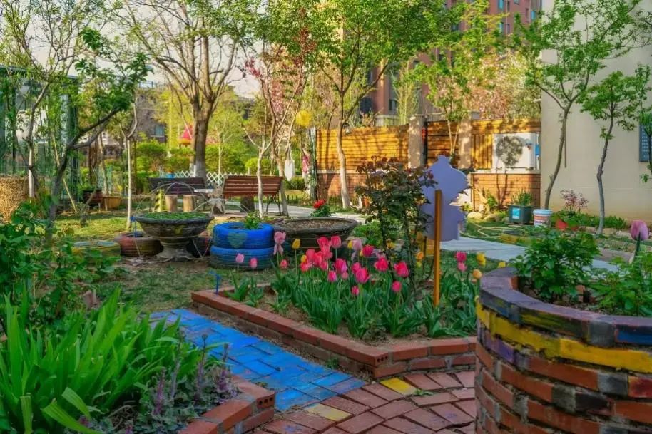 春天郁金香盛开、夏天绿意匆匆,果实累累、秋天落叶堆肥……世界地球日亲子共绘“睦邻友好、儿童友好、环境友好”的主题墙绘让这里即刻生动起来;在花园两侧入口处竖立起拱门和栅栏,一个美美的社区共建花园诞生了。
